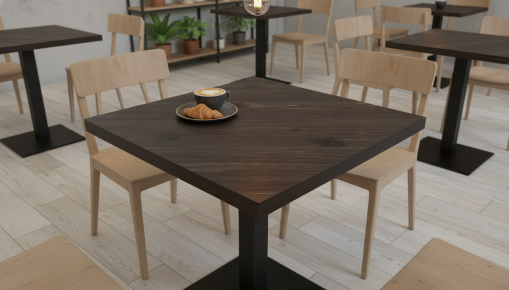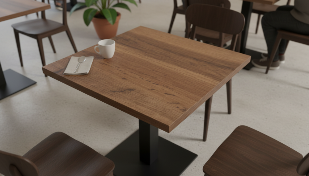 Квадратные, круглые, прямоугольные столешницы HPL. Это ламинат высокого давления. Покрытие МДФ изготавливаеся методом сухого прессования мелкой древесной стружки.